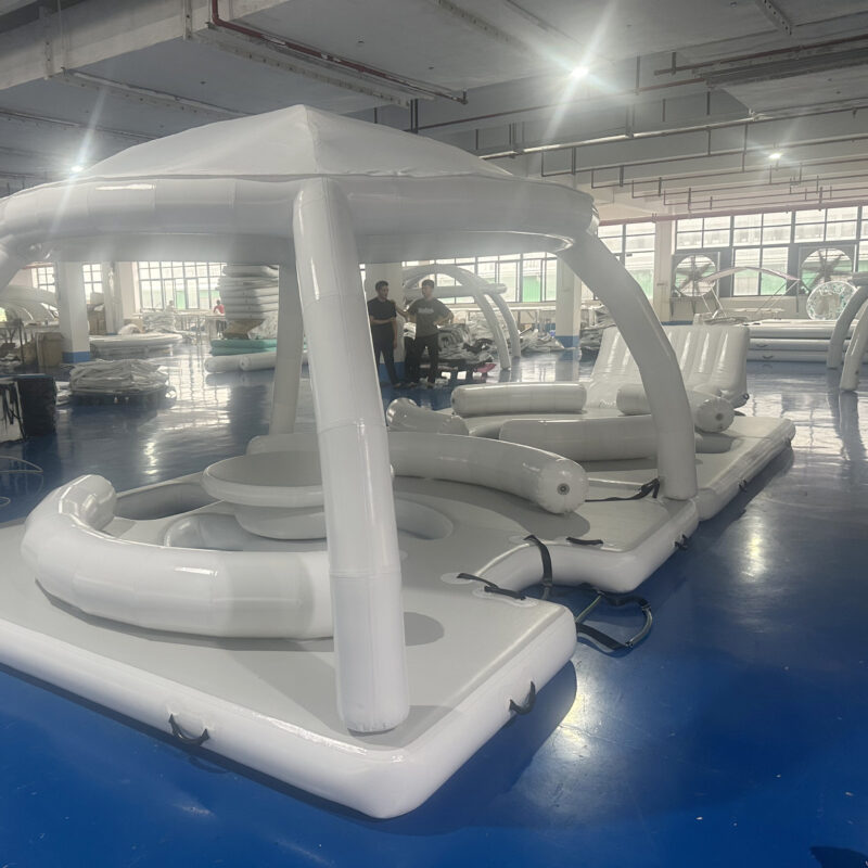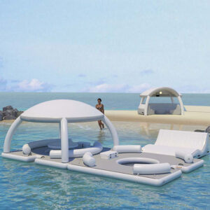 Enjoy ultimate relaxation on the water with our inflatable floating lounge platform. Designed with a stable structure, sunshade canopy, and spacious seating, it is perfect for oceans, lakes, pools, hotels, and resorts. Durable, comfortable, and easy to set up — ideal for leisure, parties, and water entertainment.