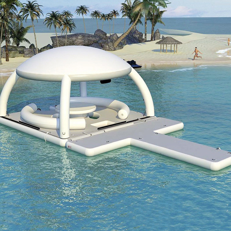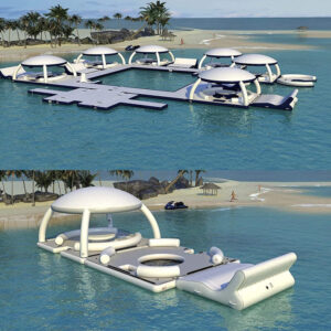 The large, spacious layout accommodates multiple people at once, while the reinforced air-chamber structure ensures strong buoyancy and enhanced safety. It can be easily inflated and deflated, making transportation and storage very convenient. Whether used in a resort, private villa, beach club, hotel pool, or open-water environment, this floating lounge platform elevates the water leisure experience with premium comfort and style.